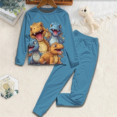 Para Meninos 3D Dinossauro Conjuntos de pijama Conjuntos de pijama com camiseta e calça Manga Longa Impressão 3D Outono Inverno Ativo Básico Infantil 4 anos + Gola Redonda Casa Diário Normal