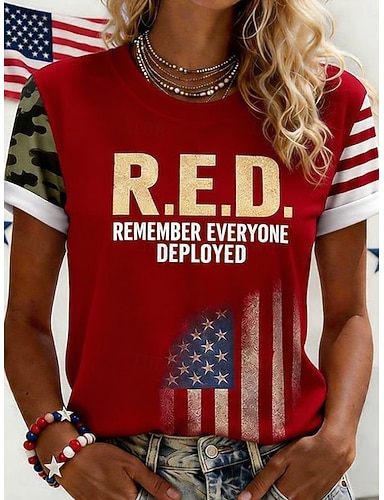 Dia da Independência Americana Mulheres Camiseta Imprimir Gráfico Bandeira à moda Clássico Casual Manga Curta Gola Redonda Decote Redondo Tops regulares Diário Azul Vermelho Vermelho / Azul Verão