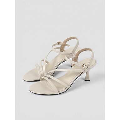 Sandálias femininas de salto baixo com tiras na cor marfim - sapatos elegantes e minimalistas para festas de coquetel.