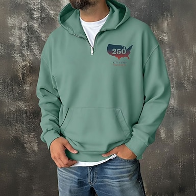Homens Estacionar Quarter Zipper Hoodie Vinho Azul Marinha Verde Cinzento Azul Claro Com Capuz Gráfico Bolsos Casual Diário Feriado Roupa de rua Casual Outono Inverno Roupa Moletons Moletons