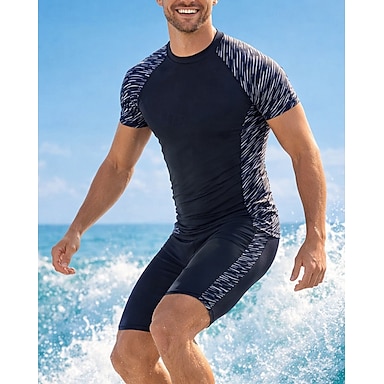 Homens Anti Atrito Roupa de banho 2 Peças Geometria Perna na altura do joelho Proteção UV Secagem Rápida Elástico Manga Curta Roupa de Banho roupa de banho Surfe Mergulho Praia Verão