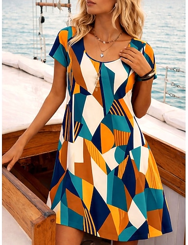 Vestido Mini Feminino Vestido Petite Vestido T Shirt Vestido Tee Vestido Shift Vestido de Verão Vestido de Moda Ativa Streetwear ao Ar Livre Férias Trabalho Corte Regular Floral Manga Curta Decote