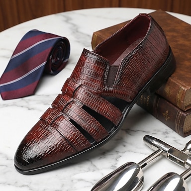 Sapatos masculinos slip-on em couro sintético preto e marrom, estilosos e duráveis, perfeitos para noites em resorts e eventos noturnos.