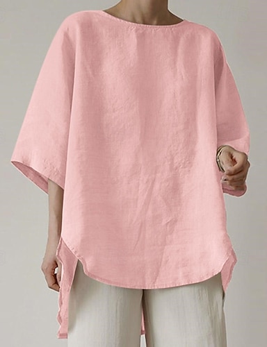 Mulheres Camisas de algodão e linho Blusa Linho de algodão sintético Patchwork Botões Tecido Vintage à moda Meia Manga Gola Redonda Tops regulares Diário Feriado Para Noite Preto Branco Rosa Verão