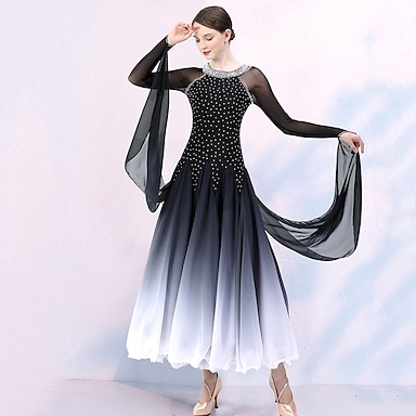 vestidos de competição de salão de baile feminino festa de desempenho trajes de dança moderna grande balanço manga longa padrão tango valsa roupa de dança