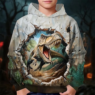 Para Meninos 3D Gráfico Moletom Manga Longa Outono Inverno Moda Básico Infantil 4-12 anos Com Capuz Ao ar livre Casual Diário Normal