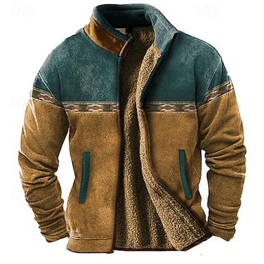 Homens Estampado Tiras verticais Moletom com zíper até o peito Moletons Manga Longa Moletom Meio Zíper Vintage retrô Estampado Feriado Para Noite Festival Imprimir Outono Inverno