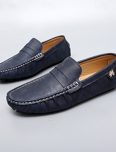 mocassins masculinos de couro sintético azul – calçados confortáveis para dirigir, casuais e para viagens de negócios e uso diário