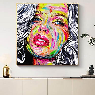 Pintura a óleo feita à mão em tela acrílica arte de parede decoração pop art mulheres rosto faca desenho para decoração de casa pintura sem moldura enrolada e não esticada