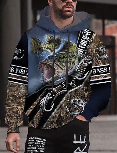 Homens Gráfico Peixes Moletom Moletons Roupa de rua Designer Casual Grande e Alto Manga Longa Com Capuz Desportos e Ar livre Diário Preto Azul Real Azul Verde Cáqui Imprimir Primavera & Outono