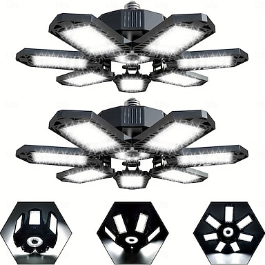 Lâmpada LED para garagem com faixa de iluminação de teto de alto brilho 6500k, 7+1 painéis deformáveis, adequada para porão, celeiro, lavanderia e áreas de armazenamento.