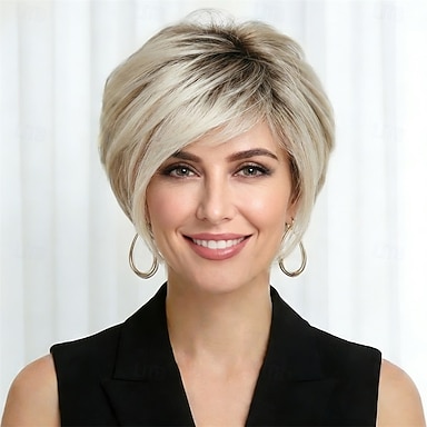 Peruca pixie loira elegante para mulheres - corte curto moderno com textura sutil.