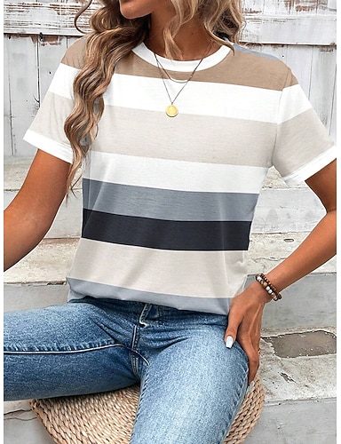Mulheres Camiseta T-shirt Imprimir Gráfico Listrado à moda Clássico Casual Manga Curta Gola Redonda Tops regulares Diário Esportes Para Noite Branco Verão Primavera