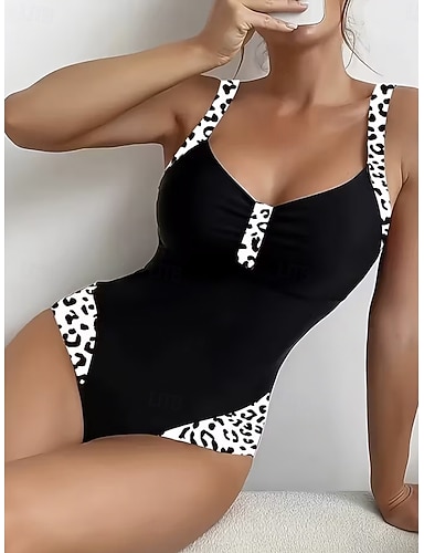 Mulheres Roupa de Banho Uma pedaço Monoquíni Slip roupa de banho Compressão abdominal Cintura Alta Delgado Frente Única Férias Vintage Gráfico Leopardo Decote V Sem Manga Fatos de banho