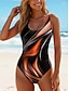 Maiô Feminino 1 Peça Slimming Colorido Monokini Alta Cintura Controle de Barriga Costas Nuas Roupas de Praia Vintage Gráfico Geométrico U Decote Sem Mangas