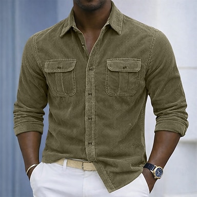 Homens Jaqueta de Camisa Jaqueta de Veludo Casual Diário Respirável Bolsos Primavera & Outono Tecido Clássico Lapela Padrão Preto Branco Verde Escuro Marron Casaco