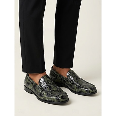 Mocassins masculinos em couro sintético com estampa de vaca, modernos e confortáveis, perfeitos para ocasiões semiformal, passeios casuais e casamentos.