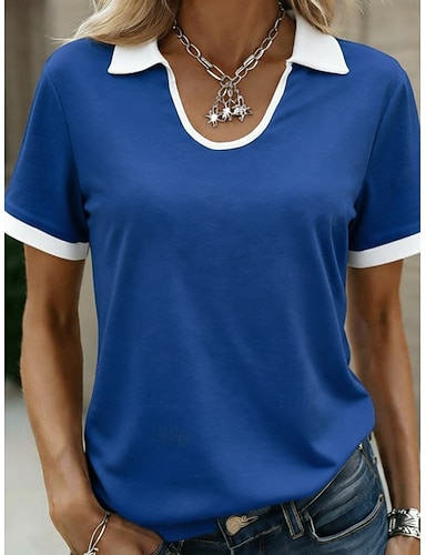 Mulheres Blusa Patchwork Bloco de cor Vintage à moda Manga Curta Colarinho polo Tops regulares Diário Feriado Para Noite Azul Preto Vermelho Azul Marinha Verde Escuro Verão Primavera
