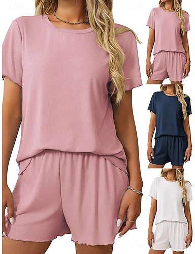 Mulheres Conjuntos de shorts Bolero Top Manga Curta Decote Redondo Tecido Franzido Patchwork Elegante Moda Roupa de rua Casual Diário Ao ar livre Preto Branco Rosa Verão Normal