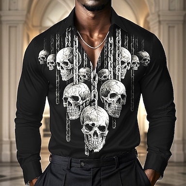 Homens Correntes Impressão Caveiras Camisa Social Blusa de cetim Saia Manga Longa Estilo gótico escuro Ao ar livre Feriado Verão Primavera Outono Aberto para a Lateral Impressão 3D Camisas de botões