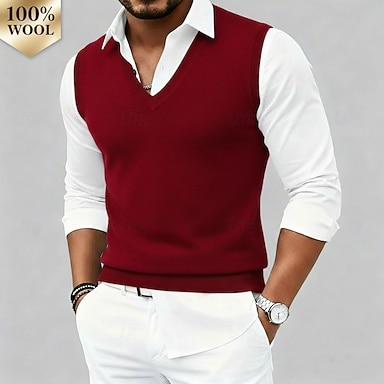 Suéter masculino premium de lã pura e cashmere com decote em V, modelo clássico, macio, quente e respirável.