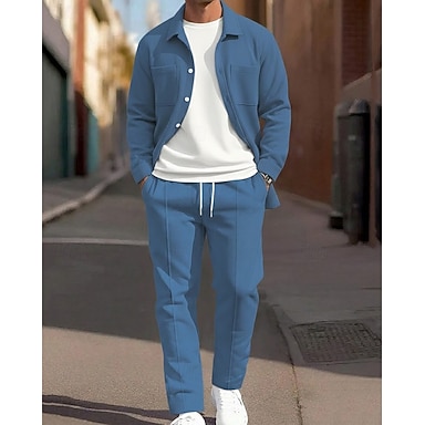 Homens Moletom Conjunto Lapela Ao ar livre Férias Diário Abotoar Bolsos Tecido Azul Preto Verde Tropa Roupas Esportivas Esportes Moda Outono