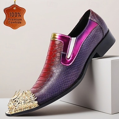 Sapatos masculinos de couro premium, modelo slip-on, com design de dragão dourado – calçado formal de luxo para eventos noturnos e de gala.