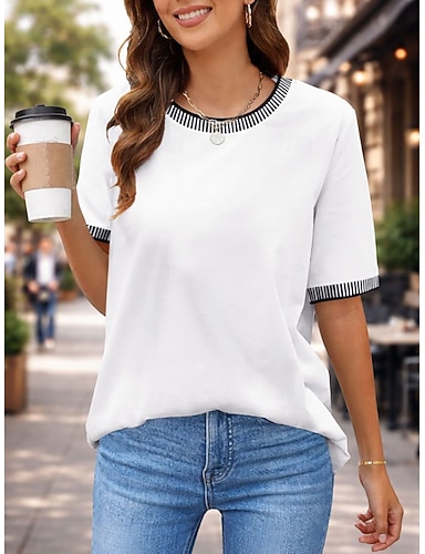 Mulheres Camiseta T-shirt Patchwork Listrado Moda à moda Clássico Manga Curta Gola Redonda Tops regulares Diário Para Noite Final de semana Azul Preto Branco Rosa Roxo Verão Primavera