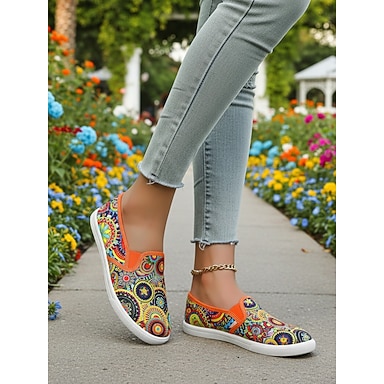 sapatos femininos de lona com estampa de mandala vibrante – sapatilhas casuais e confortáveis para uso diário e viagens