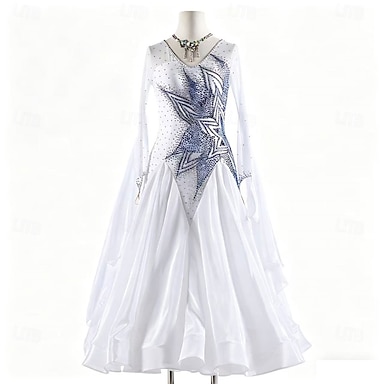 Vestido de baile branco de elite para mulheres - estilo moderno americano com design de estrela em strass, perfeito para competições de valsa.