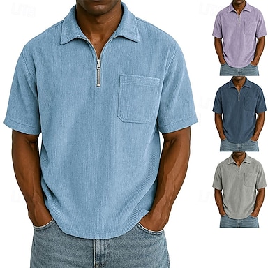 Homens Polo com zíper Textura Casual Feriado Lapela Quarter Zip Manga Curta Moda Básico Tecido Textura Quarter Zip Quente Verão Primavera Normal Azul Claro Verde Militar Castanho Escuro Preto Roxo
