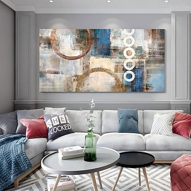 Pintura a óleo feita à mão em tela, arte de parede, decoração moderna, abstrata, formas geométricas, decoração para casa, pintura enrolada, sem moldura, não esticada
