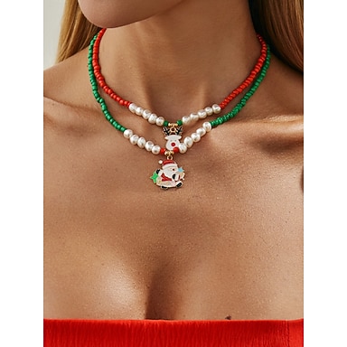 Conjunto de colar de Natal feminino com pingentes de Papai Noel, renas e árvores, joias coloridas com miçangas para festas e presentes de Natal