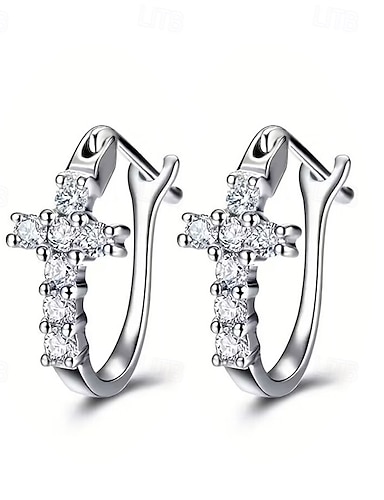 1 par Brinco For Mulheres Zircônia Cubica Diário Rua Cobre Monograma Cruz