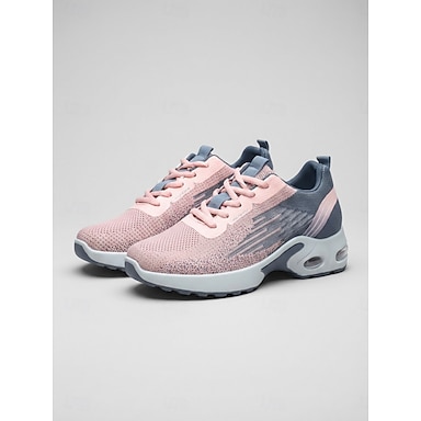 Tênis feminino rosa de malha respirável – calçado leve e acolchoado para caminhada, com cadarço flexível, ideal para viagens, academia e atividades ao ar livre. &uso diário