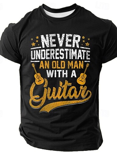 Camiseta Gráfica Masculina Nunca Subestime um Velho com uma Guitarra - Presente Engraçado para Músicos e Hobbies