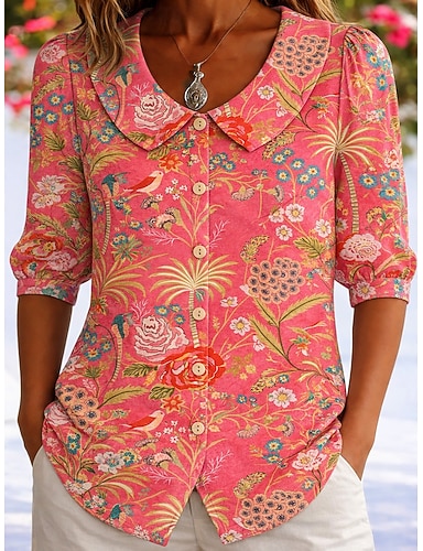 Mulheres Camisa Social Floral Elegante Boêmia Férias Coleira Peter Pan Tops longos Diário Streetwear Trabalho Roxo Laranja Verde Verão Primavera