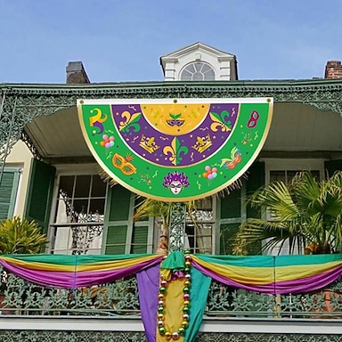 Bandeira do Carnaval do Brasil, meia bandeira do Mardi Gras, decoração para festa de Carnaval, clima festivo, bandeira colorida para casa, desfile e decoração de eventos ao ar livre.
