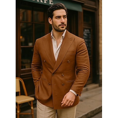 Masculino Blazer 100% linho Formal Casamento Natal Elegante Vintage Verão Primavera 100% Linho Côr Sólida Bolsos Puro Trespassado Jaqueta esporte Preto Branco Laranja Verde Tropa