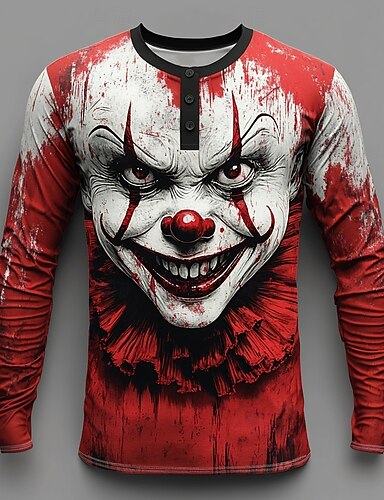 Homens Palhaço Camisa Henley Manga Longa Moda Estilo bonito Diário Casual Feriado Para Noite Outono Primavera & Outono Vermelho Henley Camiseta Henley