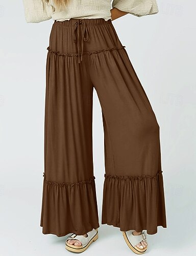 Mulheres Calças Calça casual Calça verão Calças de praia Férias Moda Casual Diário Comprimento total Cintura Média Côr Sólida Tecido Perna larga Cintura elástica Conforto Macio Respirável Sem