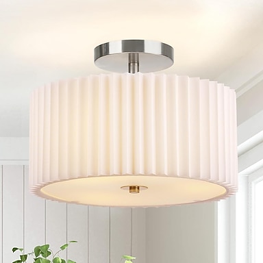 lustre de tambor com abajur branco, luminária de teto moderna de montagem semi-embutida para cozinha, quarto, sala de estar, corredor, lustre com abajur de tambor 110-240v