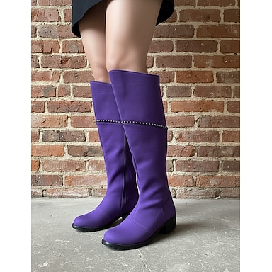 botas femininas de camurça roxa até o joelho com zíper lateral e detalhes cravejados - calçados casuais elegantes para o outono e inverno