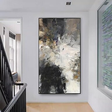 Pintura a óleo artesanal em tela, arte de parede, decoração abstrata moderna, preto e branco para decoração de casa, pintura sem moldura enrolada