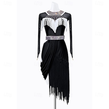 Vestidos de Coquetel Preto Vestido Coluna Elegante Convidada de Casamento Formal Comprimento Chá Mangas Longas Colarinho Camisa Cinto Faixa Stretch Crepe com Fenda