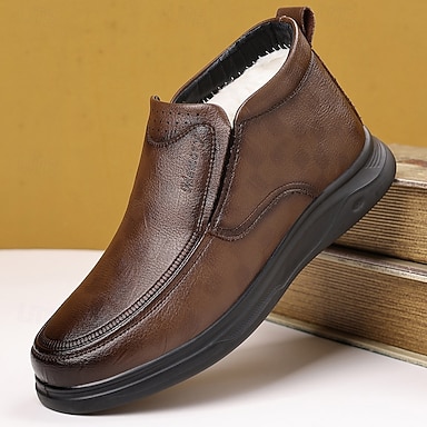 Botas de inverno masculinas de couro sintético Rown com forro de lã – calçados confortáveis e aconchegantes para climas frios e passeios casuais