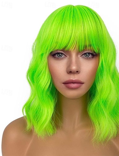Peruca de Disgust de Inside Out 2 Peruca Curta Verde para Mulheres Peruca Bob Verde com Franjas Cabelo Sintético Estilizado para Fantasia de Carnaval e Festa (Apenas Perucas) Perucas de Halloween