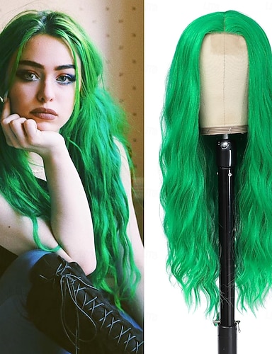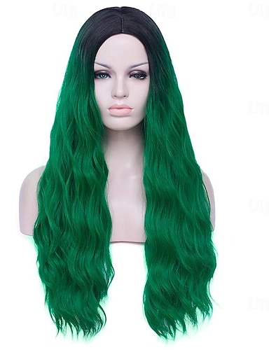 peruca verde peruca de cabelo liso com máquina de franja de ar peruca de raiz profunda gradiente verde 2 cores fibra sintética resistente ao calor longa sem cola de cabelo 24 polegadas