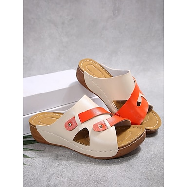 sandálias vermelhas rasteiras para mulheres – design estiloso de bico aberto com detalhe de fivela metálica – calçados confortáveis de verão para praia, férias e uso casual