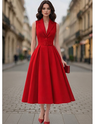 Mulheres Vestido Blazer Vestido smoking Linha A O negócio Formal Convidado do casamento Crepe Esticado Elegante Formal Sem Manga Longuette Comprimento Midi Lapela Pontuda Comum 1 Botão